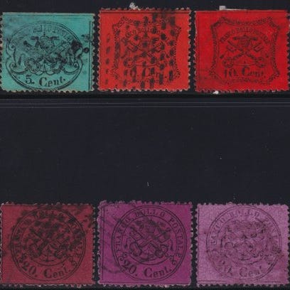 Italian antiikkivaltiot - Kirkkovaltio 1868 - 30.11. 5+ 5 c. Sass 25b kirjeestä