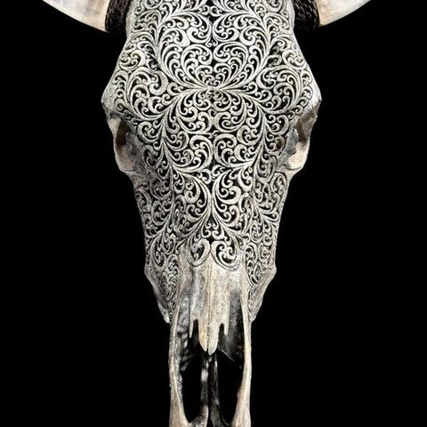 Ei lähtöhintaa - Kaunis suuri harmaa käsin veistetty härän pääkallo -