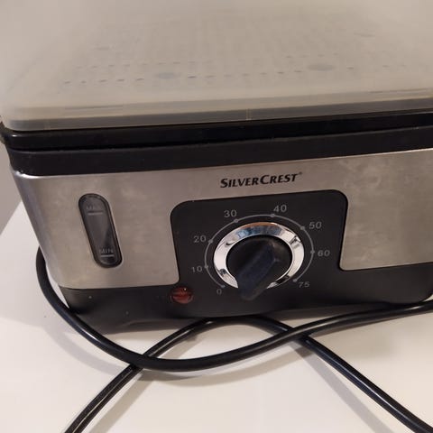Siisti Braun höyrykeitin. Laitteessa on kaksi päällekkäin pinottavaa höyrytysastiaa, joilla voi valmistaa useita ruoka-aineita samanaikaisesti. Etuosassa on mekaaninen ajastin. Sähköjohto tavallisella pistokkeella. Käyttöohje mukana.