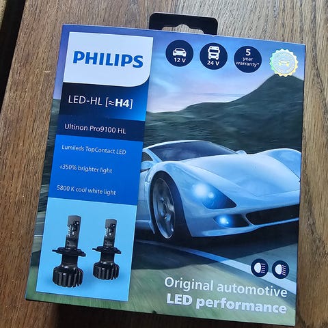 Auton vaihdon myötä ylimääräiseksi jääneet Philipsin polttimot H4 liitännällä.
