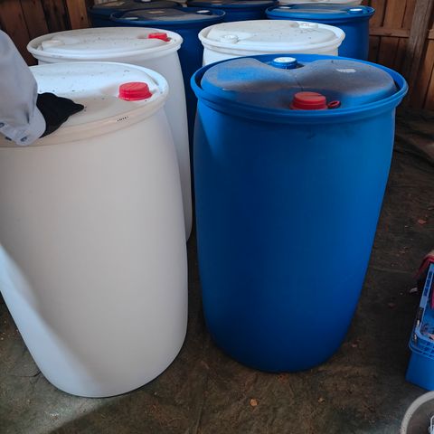 Ehjät ja puhtaat peltitynnyrit 200 l kannella.