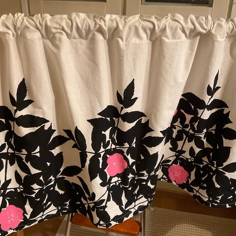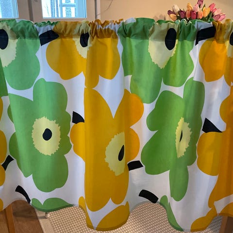 Marimekko Ruusupuu kankaasta tehty kappaverho , käyttämätön. 55x202 cm, tankokuja 6 cm. Saatavilla 2 kpl samanlaisia. 45 e/kpl
