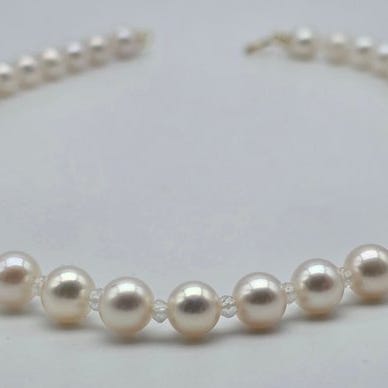 Kaulakoru - 18 kt. Keltakulta Helmi - Tansaniitti - Akoyapearat 7–7,3 mm