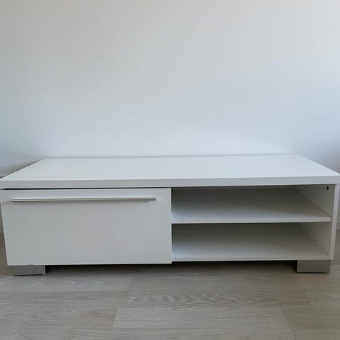 Tv taso jossa yksi vetoovi ja yksi vedettävä laatikko.
