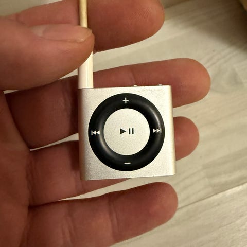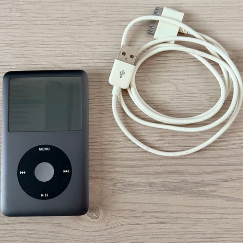 Apple iPod Classic kannettava soitin. Laitteessa on pyöritettävä click wheel -ohjain ja näyttö musiikin selaamiseen ja toistamiseen. Sopii digitaalisen musiikin kuunteluun kuulokkeilla tai yhteensopivan telakan tai kaapelin kautta ulkoisiin kaiuttimiin liitettynä. Tarkemmat tiedot, kuten tallennustila ja tarkka malliversio, eivät käy ilmi.