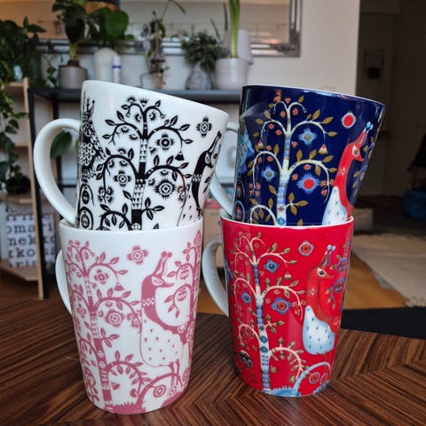 Iittala Taika muki 0,4 l, väri valkoinen. Tarrat paikallaan, eri sarjaa kuin muut meidän taika-mukit niin ei ole päässyt käyttöön. Kissatalous. MMM. Nouto Moisiosta tai postitus.