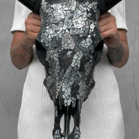 Ei vähimmäishintaa - upea lehmän pääkallo lasimosaiikkikoristeella - valkoi