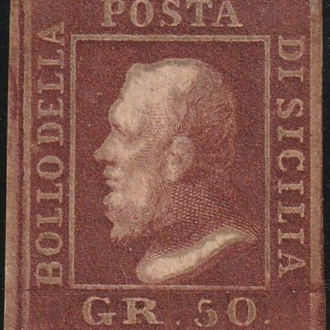 Italian antiikkivaltiot - Sisilia 1859 - 50 g Sass 14 ruskea lakka, hyvin