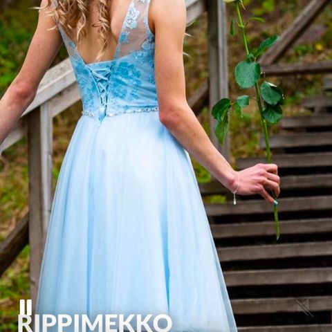 Kaunis vaaleansininen rippimekko, mekko on kokoa 34 mutta menee 36 kokoiselle juhlijalle. Käytetty kerran.