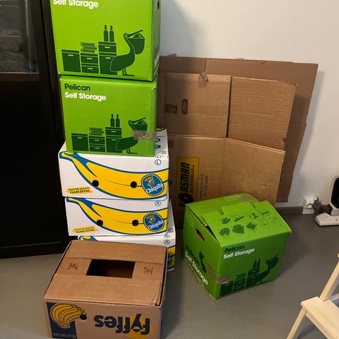Annetaan muuttolaatikoita, lisää banaanilaatikoita ja pari muuttolaatikkoa tulee lisää, kunhan ehtii (ja jaksaa) purkaa.