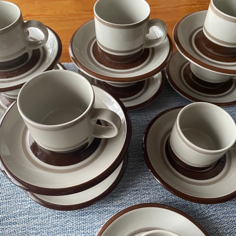 Arabia Pirtti Teekupit 4 kpl,asetit 4kpl, pullalautaset 19,5 cm 4 kpl ja pullalautaset 17 cm 3 kpl. Keräilijä tarjoa hintaa.
