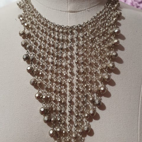 Hopeanvärinen lyhyt kaulakoru. Pientä tummentumaa. Muuten en huomaa vikoja.