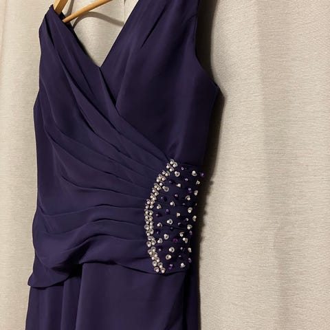 Itse tehty iltapuku naisille, koko M/L. Pitkä, violetinsävyinen kangasmekko, jossa on vyötäröä korostava vaakasuora koristelista. Hihaton yläosa ja leveä helma. Soveltuu ilta- ja juhlakäyttöön. Mekko on aika painava, hyvä päällä ja lämmin, sopii hyvin talvikäyttöön. Itselle nykyään liian iso. Sopii 160-165 cm pituiselle.