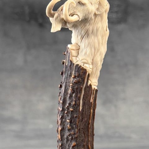 Kaiverrus, Stunning puma carving from a deer antler on a custom stand - 17 cm -