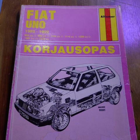Suomenkielinen, ok kuntoinen korjausopas koskien Fiat Uno henkilöautoa, vuosimallit 1983-1988. Huolto- ja korjausohjeita selkein kuvin, sähkökaaviot ym.