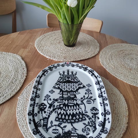 Tuotannosta poistunut musta-valkoinen iittala taika iso tarjoilulautanen (41cm x 28,5cm). Harvakseltaan käytetty, erinomainen kunto, kuin uusi.