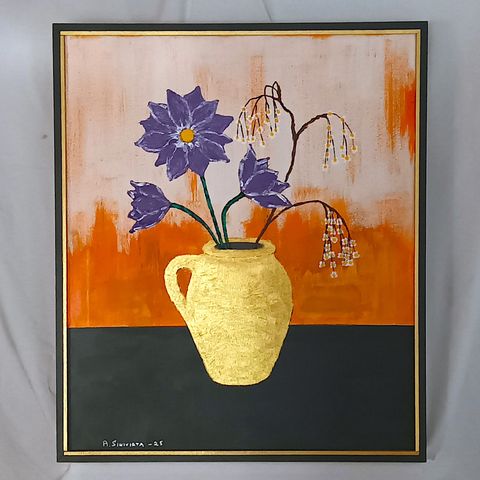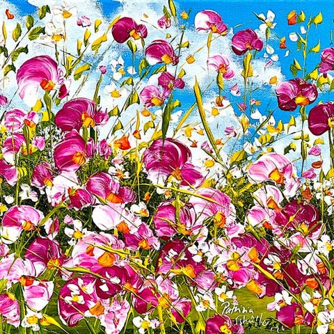 Alkuperäinen Künstlerin.UNIKATKukkien taika valkoisten ja sinisten kukkien kanssakoko mitoin 40x60 cmKuin kukkien lumous, jossa on valkoisia ja sinisiä kukkia, tämä upean herkkä kuviomotiivi loistaa tällä kanvaasilla.Vasemman puolen vaaleat heinänvarret huojuvat rentoutuneesti kuvan yli, mikä lisää väreihin keveyttä ja hieman leikillisyyttä.Väri on erittäin intensiivisesti maalattu. Maalaan periaatteessa vain erittäin korkealaatuisilla väreillä, joiden loistevoima säilyy myös vuosien ajan sellaisena kuin näette sen ostettaessa kankaalle.Kuva täynnä ystävällisyyttä, upealla tilavaikutelmalla, virkistävä ja samalla lämmin.Etupuolelle ja takasivulle allekirjoitettu.Sivun reunat on maalattu/jatkettu värillisinä kuten kuva-aihe.Venytetty kehyksellinen kangas / Kehyksen syvyys 2 cm, suoraan ripustettavaksi.PATRIZIA SCHÜLLER / www.schueller-artdesign.deSyntynyt vuonna 1975 Ratiborissa/Ylä-Sleesiassa2002–2003 Maalaus ja grafiikka Kuvataidekasvatuksen instituutissaja taideterapiaa, BochumUseita vuosia abstraktin maalauksen sekä maisema- ja alastonmaalauksen opintojaFreelance-taiteilija vuodesta 2002Asuu ja työskentelee Leverkusenissa.
