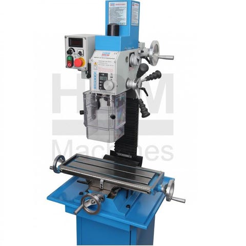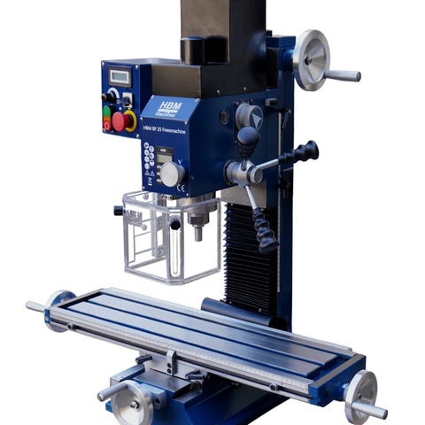 Metallijyrsinkone HBM BF 18 Vario – Monipuolinen jyrsinkone tarkkaan metallintyöstöönHBM BF 18 Vario on tehokas ja tarkka metallijyrsinkone, joka soveltuu täydellisesti erilaisten metallien jyrsintään ja poraukseen. Kone on varustettu poraistukalla ja karalla, digitaalisen syvyyden- ja kierrosluvunäytön ansiosta voit työskennellä erittäin tarkasti. Portaattomasti säädettävä kierrosluku mahdollistaa nopeuden optimoinnin eri materiaaleille ja käyttökohteille.