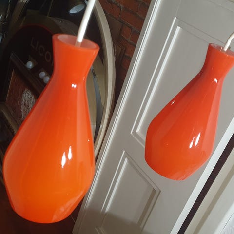 Myynnissä kaunis lasinen kattovalaisin. 70-80-luvun valaisin on uudelleensähköistetty sähkömiehen toimesta. Alkuperä Ruotsi. Lasikuvun halkaisija 40cm.