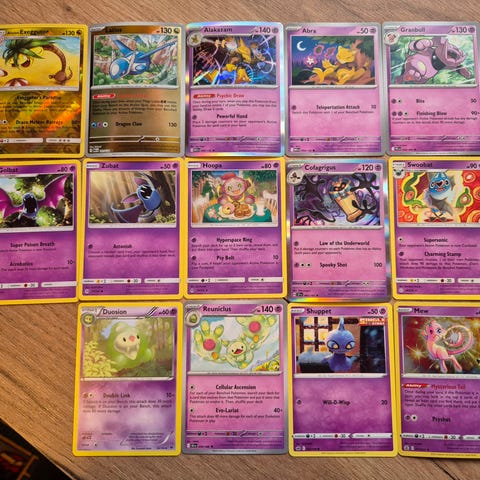 Kansiollinen Pokemon kortteja. 14 sivua ja 9 korttia per sivu.