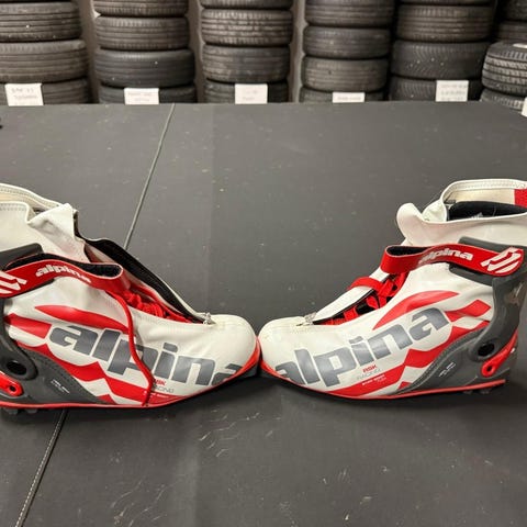 Alpina Racing RSK hiihtomonot, koko 46. Väri valko-punainen mustin yksityiskohdin. Pohjassa karkea kumikuvio, joka parantaa pitoa kävellessä. Päällinen ja vuori tekstiilimateriaalia, pohja kumia. Monot soveltuvat maastohiihtoon ja rullahiihtoon käyttäjän oman siteen yhteensopivuuden mukaan.