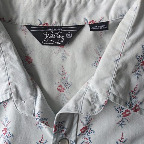 Myyntiin itselle pieneksi jäänyt Whyredin kukkapaita koossa M. Helposti eniten muilta kehuja saanut paita vaatekaapissa.
