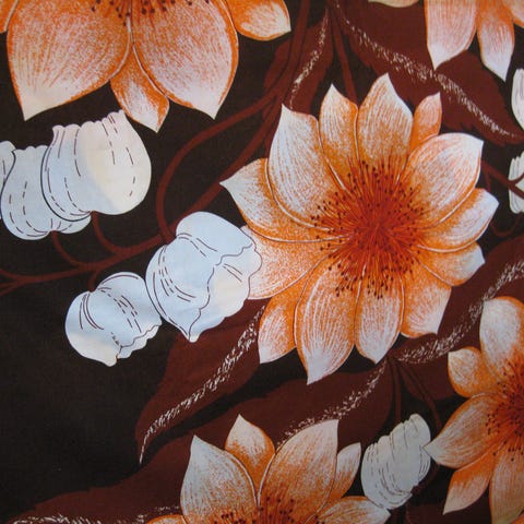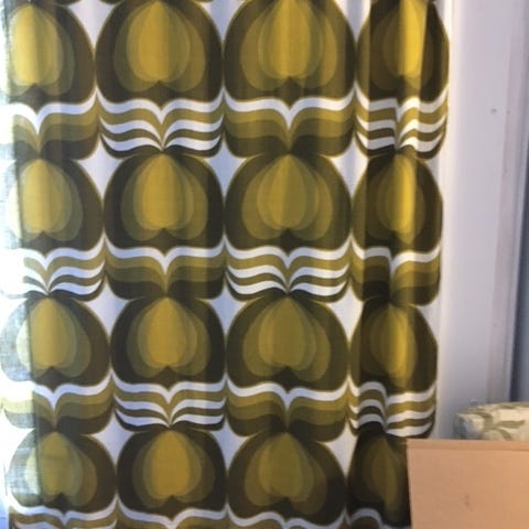 ruskeita osia riveissä metallirenkailla yhdistettynä. Sopii esimerkiksi oviaukkoon, ikkunan eteen tai tilanjakajaksi sisätiloihin. Materiaalina puu- tai puujäljitelmälevyt ja metallirenkaat. Pituus ja leveys eivät käy ilmi, mutta verho koostuu useista rinnakkaisista