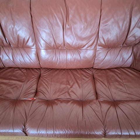 Osat ehjiä, mutta kulumaa ja käytön jälkiä on. Patjat ja tyynyt siistit. Osa kankaista irrotettavissa (vetoketjut).