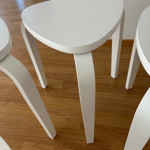 Kaksi IKEAn Kyrre koivu jakkaraa. Ehjiä ja hyvä kuntoisia. Pieniä naarmuja toisessa jakkarassa.