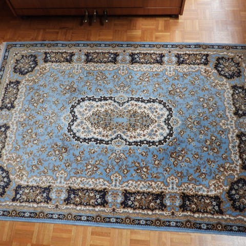 Iso 250 x 360 cm villamatto, jossa itämaistyylinen kukkakuviointi, ehkä iranilainen. Mahdollisesti konekudottu. (myyn ystäväni puolesta).