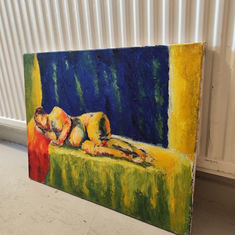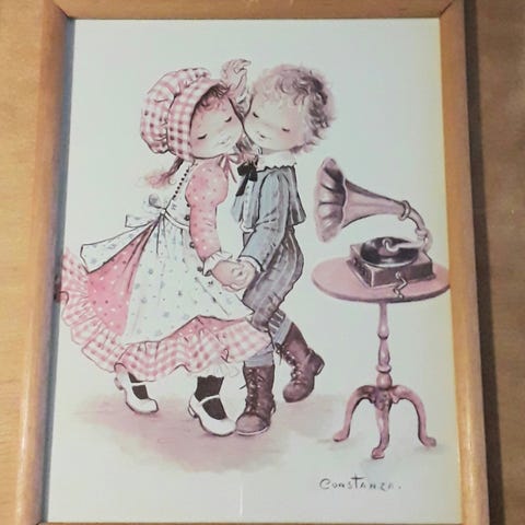 Hieno tyttö/koira aiheinen taulu 60-luvulta.