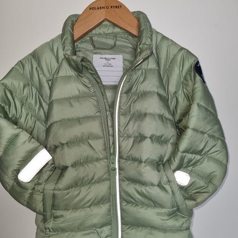 Mintunvihreä vauvan ohut kevyttoppatakki. Pientä käytön jälkeä reunoissa ja hihoissa nukkana, näkyy kuvissa. Muuten ehjä ja siisti. Pesty ja rummutettu ohjeen mukaan.hajusteeton koti.