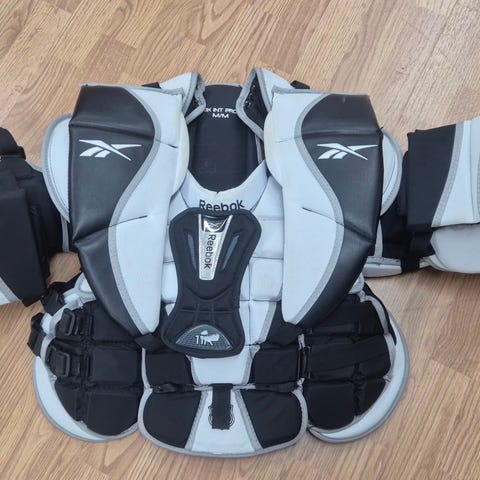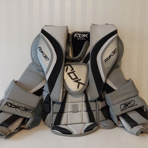 Reebok 9K jääkiekkomaalivahdin rintapanssari. Junioreiden L eli noin 150cm pituiselle käyttäjälle. Panssari täysin ehjä ja hyväkuntoinen.