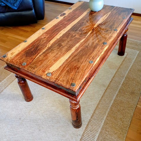 Täyspuinen sohvapöytä, 4 laatikkolla