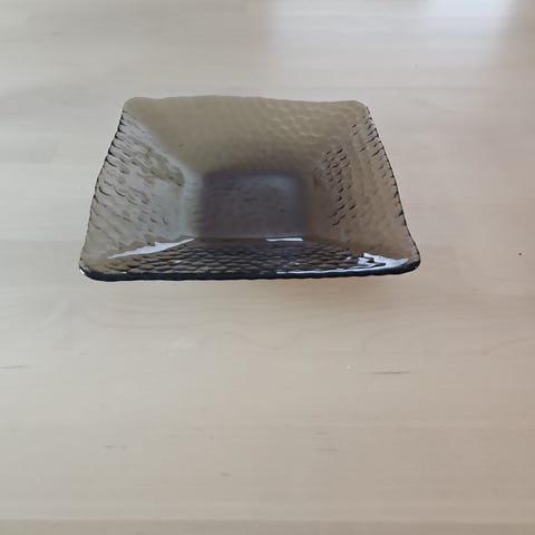 Vihreä Pentikin kynttilä lautanen/-alusta. Koko 13 x 13 cm, pohja 8 x 8 cm. Pohjassa Pentik- merkin vieressä punainen maalitahra.