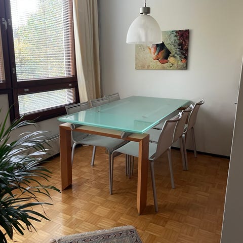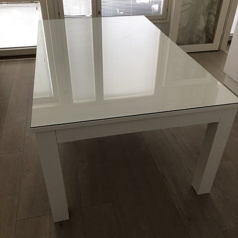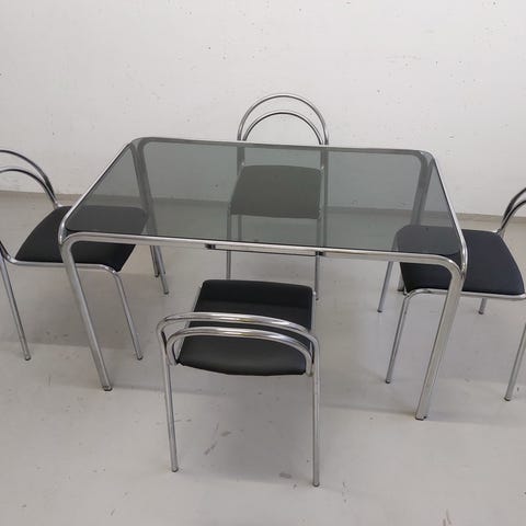 Ruokapöytä ruokasali teräsrunko keittiönpöytä italia teräs lasikansi