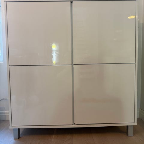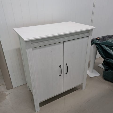 Tästä kaappi korjaustaitoiselle. Kahdesta saranasta puuttuu ruuvi,muuten ihan toimiva kaappi.
