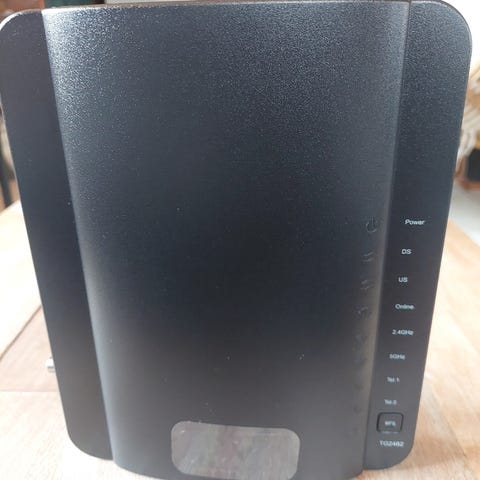 Arris TG2492S-kaapelimodeemi. Mukana virtalähde.