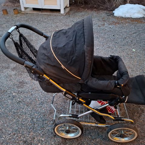 Myydään Emmaljungan Super Viking-yhdistelmärattaat. Mukaan sisältyy rattaiden runko, vaunukoppa, ratas-osa, jalkapeite, hyttysverkko ja sadesuoja.