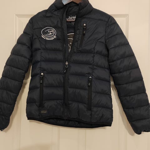 B vertigon kevyt "untuvatakki". Untuvan kaltaista materiaalia oleva kevyt treenitakki. Väri on oikeasti kylmempi pinkki miltä kuvissa näyttää. Toisessa hihassa on alaosassa tummentumaa, joka saattaisi lähteä pesussa pois. Muuten siisti ja vähän käytetty takki.