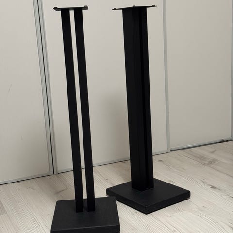 Todella tyylikkäät, jykevät ja kestävät kaiutinjalat. Nämä kestävät raskaammatkin kaiuttimet. Johdot voi kuljettaa putken sisällä. Nouto Hyvinkäältä.