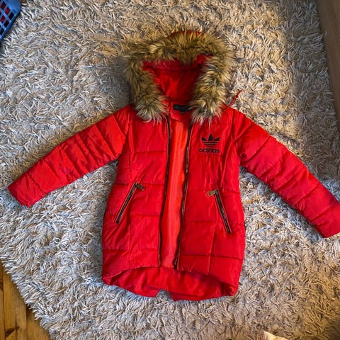 Myydään siisti toppatakki koossa 140. Käytetty kauppatakkina. Väri punainen, vaikka kuvissa näyttää oranssilta.