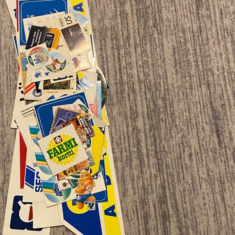 Battery 3 kpl Pepsi 5 kpl Satakunnan UA 3kpl Michelin 3 kpl muita yksi.