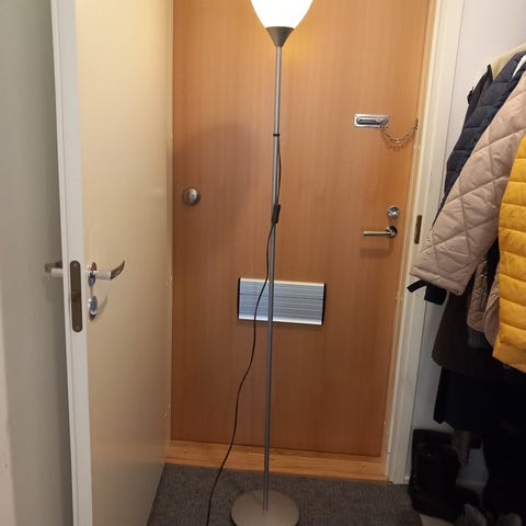 Hopeanvärinen jalkalamppu 140 cm korkeus