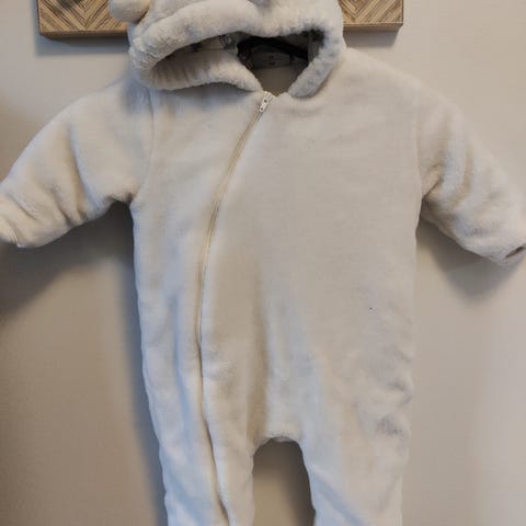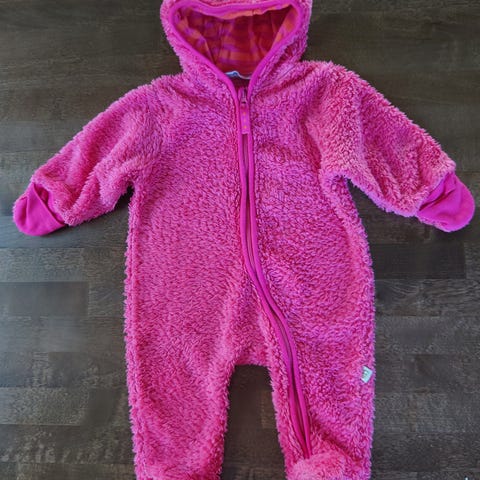 Uutena lahjaksi saatu erittäin lämmin pörröinen nallehaalari koossa 68. Ollut pelkästään vaunuissa päiväunilla yhdellä vauvalla käytössä.