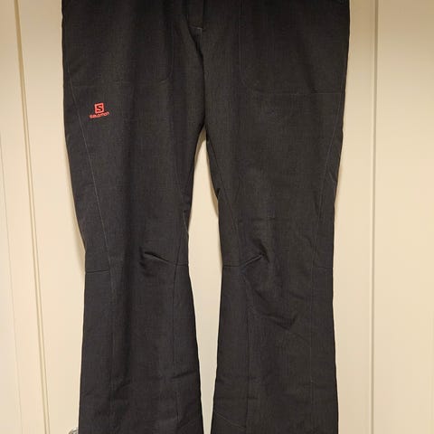 Salomon naisten ulkoiluhousut, koko S. Väri musta. Materiaalina polyesteri. Housuissa on etupuolella vetoketjulliset taskut, vyölenkit sekä nappi- ja vetoketjukiinnitys. Lahkeensuissa on lumilukot ja hieman levenevä malli. Soveltuvat lasketteluun, lumilautailuun, ulkoiluun ja muuhun talvikäyttöön.
