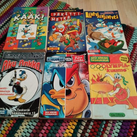 Disney Aku Ankka, Roope-setä, Mikin mysteerit ja muita Disney-sarjakuvalehtiä ja pokkareita sekalaista kokoelmaa. Kokoelmassa on useita eri Aku Ankka -taskukirjoja, Roope-setä -lehtiä, Mikin mysteeri -pokkarisarjaa sekä yksittäisiä erikoisnumeroita ja teemanumeroita. Kirjat ja lehdet ovat suomenkielisiä. Sopii luettavaksi ja kokoelmakäyttöön Disney- ja Aku Ankka -sarjakuvista kiinnostuneille.