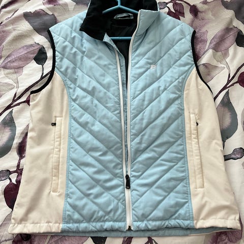 Peak Performance ohut toppa liivi naisille. Koko XL. Materiaalina polyamidi. Liivissä on kaksivärinen, kirjava ilme: etupuoli persikkaan taittava vaaleanpunainen ja takaosa musta. Edessä täyspitkä vetoketju ja vetoketjullinen tasku. Soveltuu ulkoiluun ja kerrospukeutumiseen, esim. Lasketteluun, kys. Saman sarjan toppashortsit. Toppaliivi on miellyttävän ohut ja kevyt ja ideaali kerrospukeutumiseen. Uusi, laput kiinni. Ovh. 200€