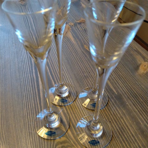 Nuutajärvi-Iittala aurora samppanlasit 4kpl. Alkuperäisissä laatikoissa. Design Heikki Orvola.