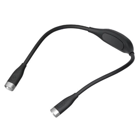 Niskan taakse laitettava valo. Taipuisat varret voi kääntää haluamaansa asentoon. Ladattava, laturi kateissa, voi ladata esim puhelimen laturilla. 3 eri valaistusasetusta. Ostettu halpahallista, hayden-merkkinen. Kokeiltu, jäänyt käyttämättä.